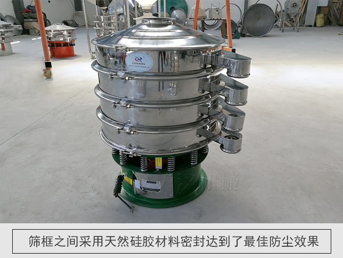 旋振篩進(jìn)料口與外界設(shè)備相連可以根據(jù)用戶的要求制作成圓形或異形料嘴,解決了對接難題便于防塵。篩框之間采用自然硅膠材料密封,由于篩框篩體為圓形樣式,因而硅膠與篩框接觸部位達(dá)到了緊密配合,解決了密封圈脫落現(xiàn)象,從而達(dá)到了佳防塵效果。