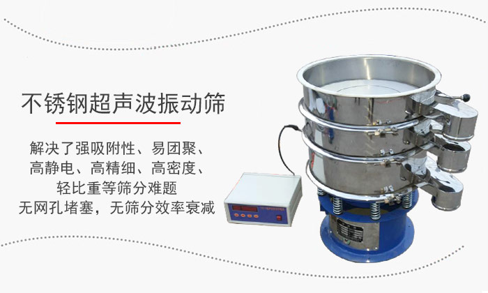 不銹鋼超聲波振動(dòng)篩是將超聲波控制器與振動(dòng)篩有機(jī)結(jié)合在一起,在篩網(wǎng)上面疊加一個(gè)高頻率低振幅的超聲振動(dòng)波,超微細(xì)粉體接受巨大的超聲加速度,使篩面上的物料始終保持懸浮狀態(tài),從而抑制粘附、摩擦、平降、楔入等堵網(wǎng)因素,從而解決了強(qiáng)吸附性、易團(tuán)聚、高靜電、高精細(xì)、高密度、輕比重等篩分難題,使超微細(xì)粉篩分不再成為難事,特別適合高品質(zhì)、精細(xì)粉體的用戶使用。大于500目篩分,無(wú)網(wǎng)孔堵塞,無(wú)篩分效率衰減。篩分精度可提高1—70%,產(chǎn)量可提高0.5-10倍。