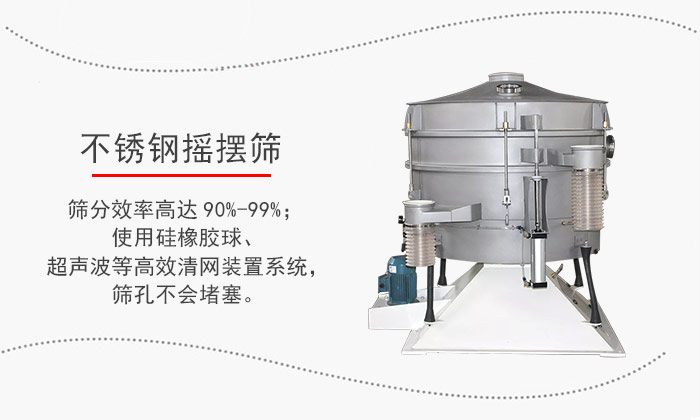 不銹鋼搖擺篩是目前有效的模擬了人工篩分運(yùn)動(dòng)的有效原理,密閉除塵,操作安全;加速度比振動(dòng)篩低4-5倍,篩分零件壽命提高而維護(hù)減少;噪音低<75分貝。特別適合難以處理的物料。高達(dá)5倍的單位面積產(chǎn)出;精確到6級(jí)分離,篩分效率高達(dá)90%-99%;使用硅橡膠球、超聲波等高效清網(wǎng)裝置系統(tǒng),篩孔不會(huì)堵塞。