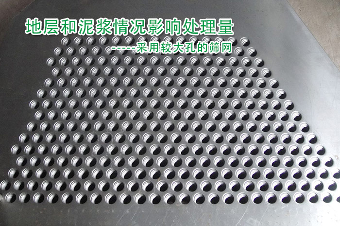 由于鉆井液中添加的藥物未能充分溶解,糊在篩網(wǎng)上,此時會發(fā)生嚴重跑漿的現(xiàn)象。應當?shù)人幬锍浞秩芙夂笤偈褂?,或者采用較大孔的篩網(wǎng)。另一種情況,當鉆到松散的含砂巖層或流沙層時,砂粒容易卡在篩網(wǎng)孔中,造成篩堵現(xiàn)象。因此要試驗幾種不同目數(shù)的篩網(wǎng)來減少篩堵現(xiàn)象。