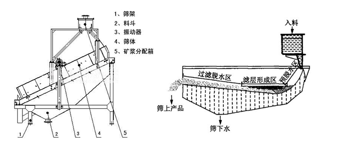篩面形式不同,脫水篩篩面多為向上爬坡,有利于干排;而一般的振動(dòng)篩是水平或者向下的篩面,以利于出料。